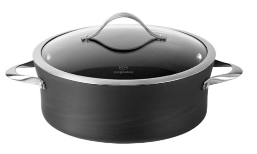This 5-qt. saucier allows you to make marinara, Hollandaise, bechamel sauce and more, efficiently and professionally. The sloped sides provide a wider surface area that lets moisture evaporate, resulting in quicker thickening and reduction of sauces. Keep the glass lid on and you can still view cooking progress without losing flavor or mo